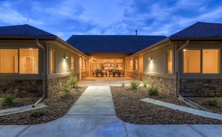 Conveniently located and easily accessible in Centennial, Colorado, the home is an inviting place for families to visit. The well-lit house lends a warm glow to the night, creating a comforting ambiance. Seniors here also benefit from around-the-clock access to medical care and a wide range of day-to-day activities. The facility goes the extra mile with on-site physician visits, hospice services, scheduled outings, ambulation assistance, as well as incontinence and medication management, among other comprehensive benefits of senior care.