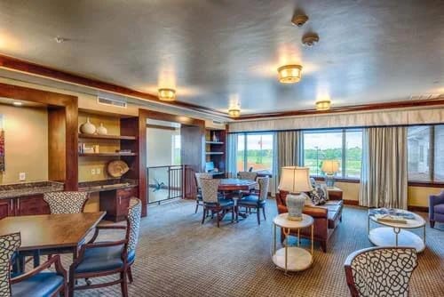 Residents gain easy access to plenty of recreation sites and delightful local amenities, providing leisure and wellness activities. Accommodating special diets, delightful and healthy meals are available to satisfy residents’ dietary needs and preferences. This pet-friendly community is also equipped with a theater room, cozy indoor spaces, a game room, and a fitness center, creating the ideal setting for residents to spend their golden years without worries.
