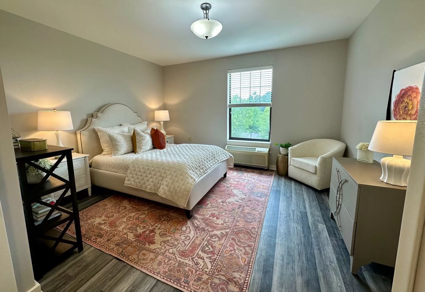 The senior apartment provides a list of comprehensive amenities and services that help make the lives of its residents hassle-free, including 24-hour licensed supervision, medication services, housekeeping, balanced meals provided, engaging activities scheduled, and a full-service salon available.