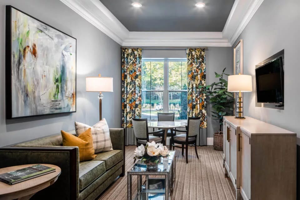 Residents are encouraged to participate in activities like flower arranging, which brightens up the community and allows them to express their creativity. They have many amenities to make residents feel at home, including a salon and barber, fitness center, library, and private dining options. Plus, three delicious meals are provided daily, so residents never have to worry about cooking or cleaning up after themselves. And for those who love pets, the community is pet-friendly. The Neighborhood at Vestavia Hills truly is a gold standard in Birmingham’s senior living communities.