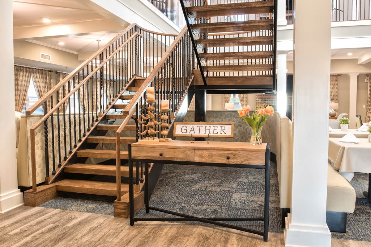 Experience a heartfelt senior living experience in Northern Kentucky. Situated conveniently near Merchants Square, Dominion Senior Living of Florence is a retirement community that caters to seniors in Florence, Kentucky. The community features a serene courtyard adorned with picnic areas, walking paths, sensory gardens, and engaging games for residents to relish.