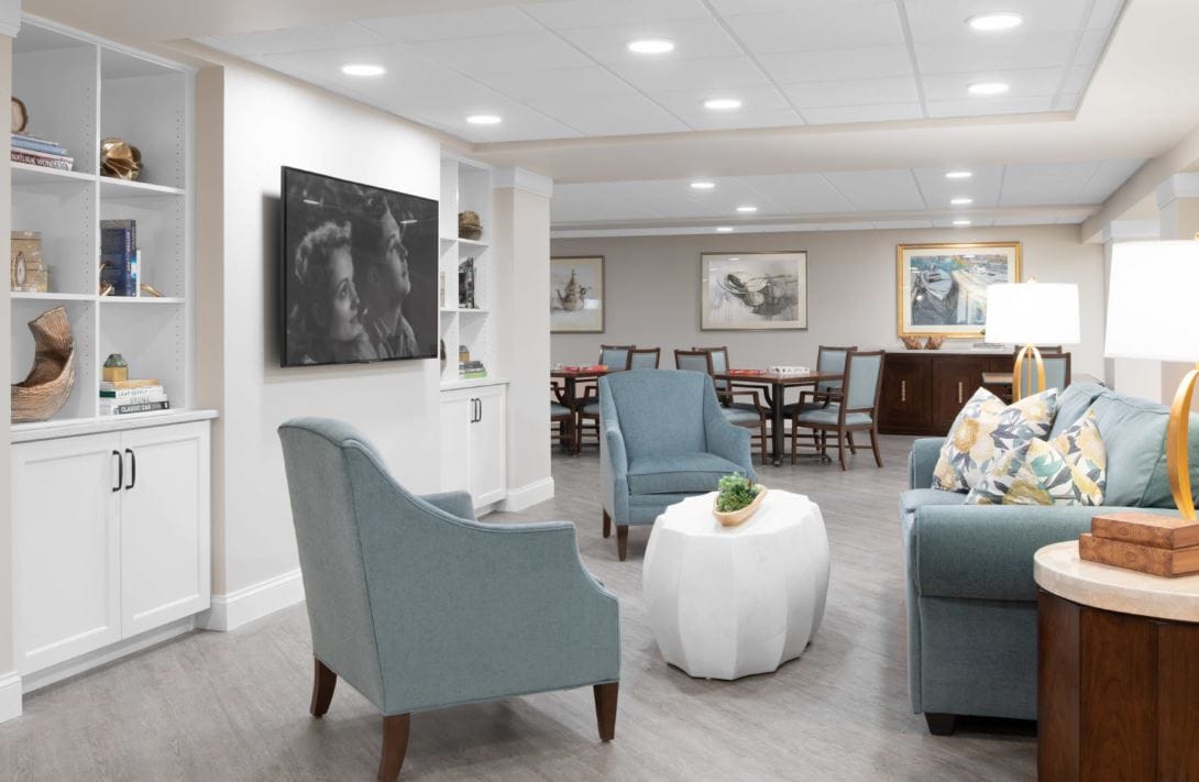 Anchor Bay at Greenwich is a senior living community nestled by the Atlantic Ocean. The home’s assisted living and memory support services are unmatched, ensuring seniors feel revitalized and refreshed every day. Its cool, fresh hues enhance the serene and relaxing atmosphere of the community, creating an ambiance that truly feels like home.