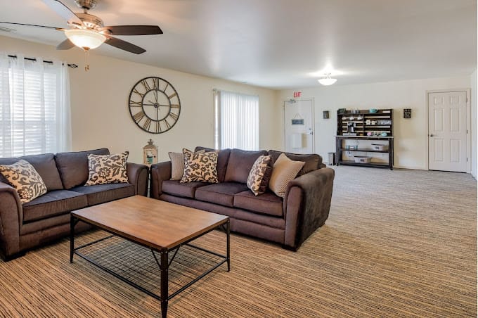 Community amenities include on-site rehabilitation services, around-the-clock nurse care, private rooms and bathrooms, home-style-cooked meals, a full-service salon, and individualized assistance.