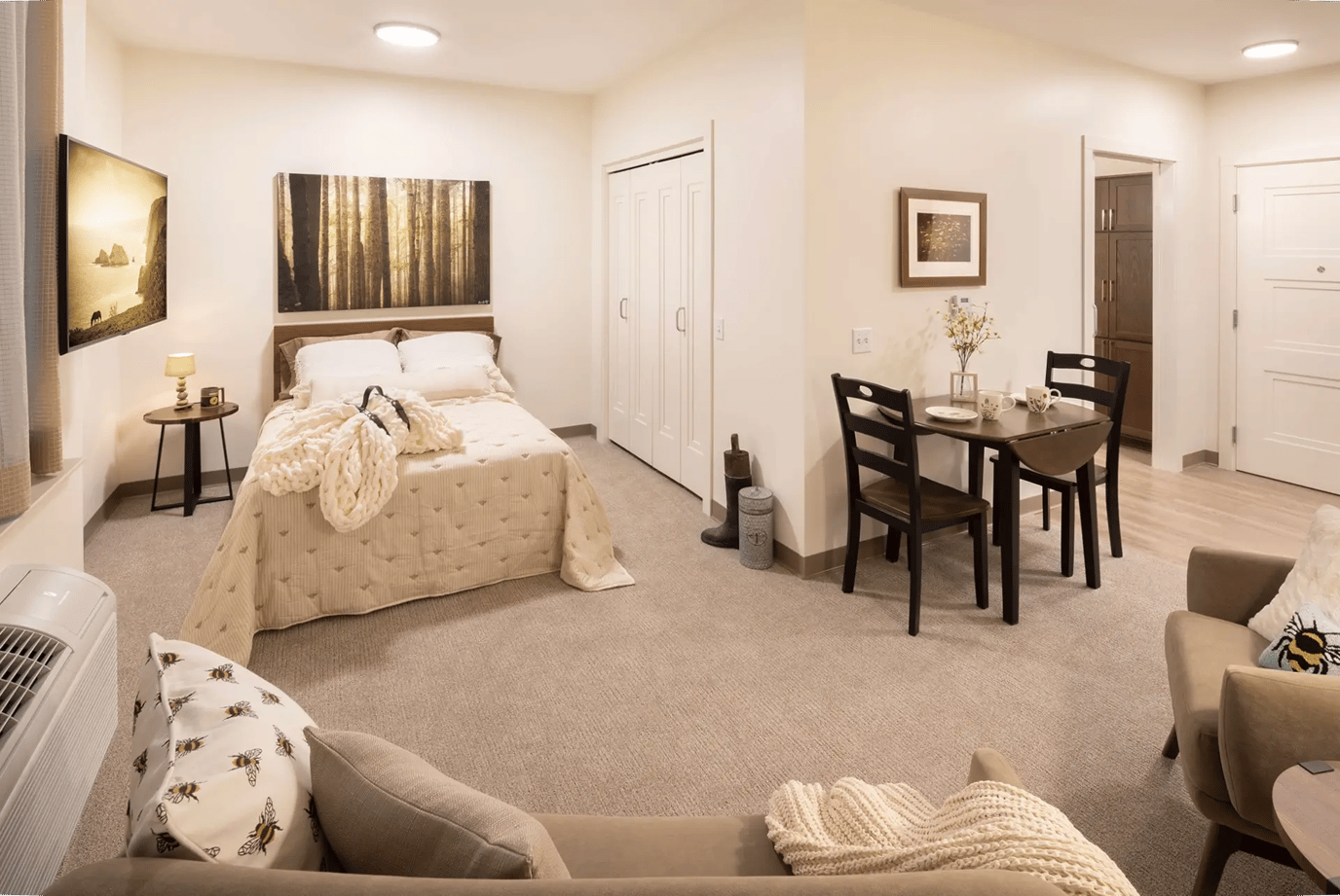 Their all-inclusive amenities essentially are helpful services that help with daily living, such as medication management and charting, housekeeping and laundry, transportation services, and ADLs (assistance with daily living: bathing, grooming, dressing, etc.).