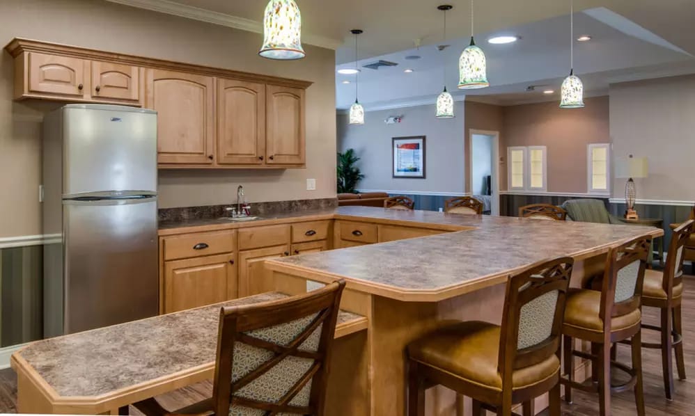 Committed to providing an engaging environment, the community conducts an array of stimulating activities tailored to residents’ interests and strengths. Residents enjoy access to amenities such as full-service beauty salon, landscaped courtyards and patio areas, a putting green, and community gazebo. Three meals per day and unlimited snacks are provided to ensure residents are energized and nourished to enjoy an active lifestyle.