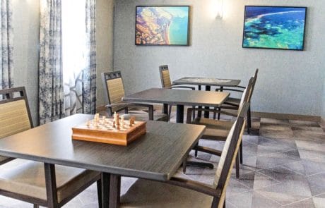 Committed to keeping residents active and engaged, the community conducts an array of interesting activities and events. From fitness classes to game nights to cultural outings, there’s always something to do and something for everyone to enjoy. An excellent team of chefs takes care of residents’ nutritional needs and cravings with delicious and nutritious meals made using fresh, locally sourced ingredients. Amenities include a cozy living room with fireplace, elegant dining spaces, TV lounge, activity room, hair salon, and relaxing outdoor patios for basking in the sun or enjoying a chat with friends.
