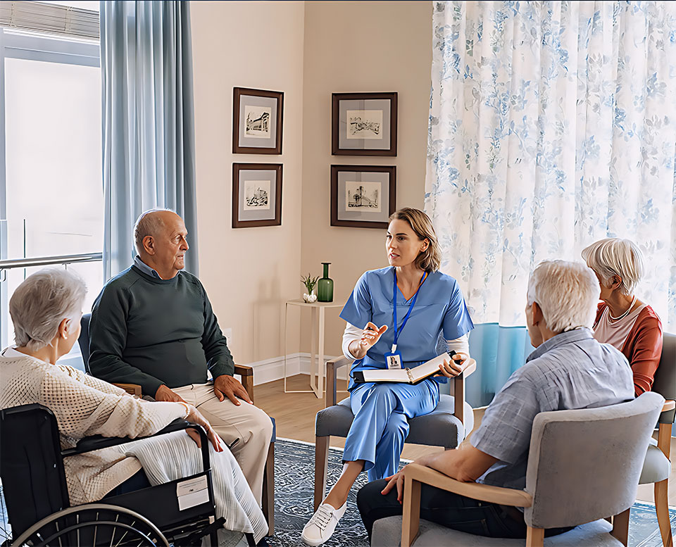 Assisted Living For seniors needing help with daily tasks but not full-time nursing.