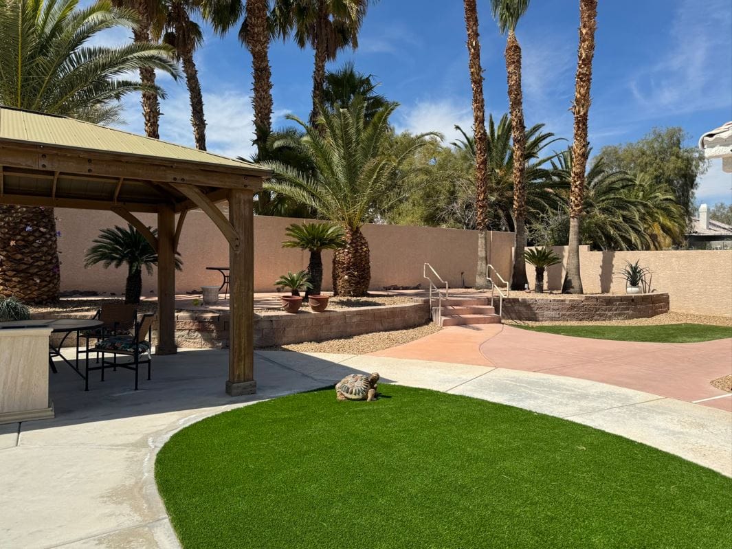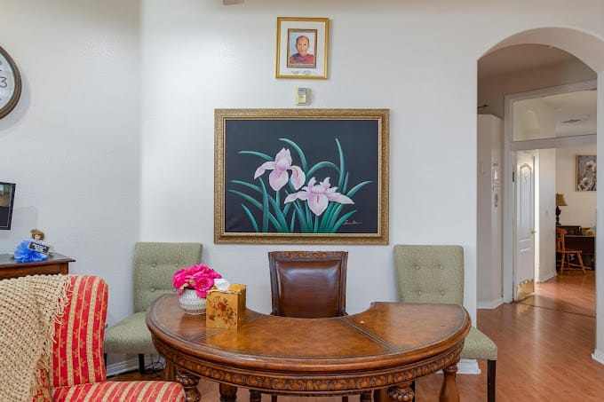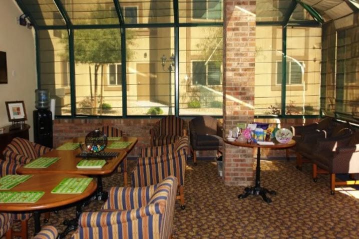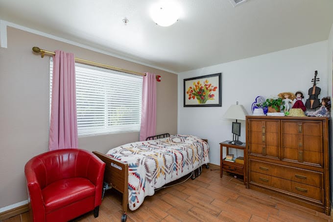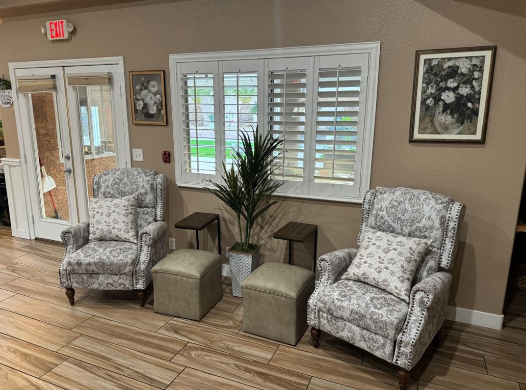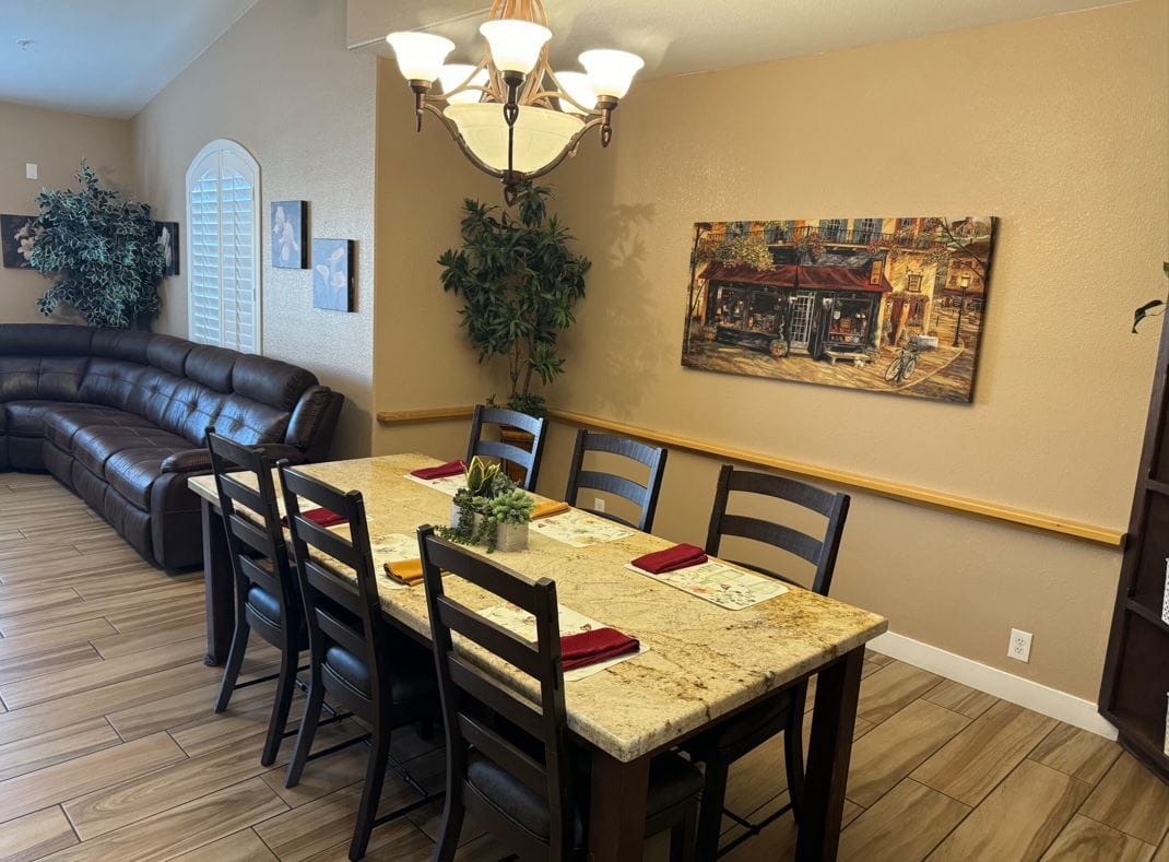 Our warm, welcoming 9,000+ square foot home sitting on an acre is the premier state licensed assisted living and memory care group home in North Las Vegas. Our luxury and fully-furnished shared and private 350+ sq ft suites are equipped with ensuite fully accessible restrooms and walk-in closets providing privacy and comfort for our residents. We are the best of both worlds with the space and amenities of a larger commercial facility, but with the personalized quality care and homey setting of a smaller care home. Our residents love to stay active and have fun utilizing our many amenities including our courtyard oasis, multiple aquariums, pet therapy dog, large TVs, exercise equipment, and grand piano. Give us a call and come see for yourself on your personal tour today.