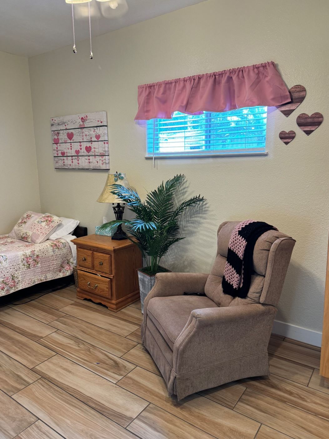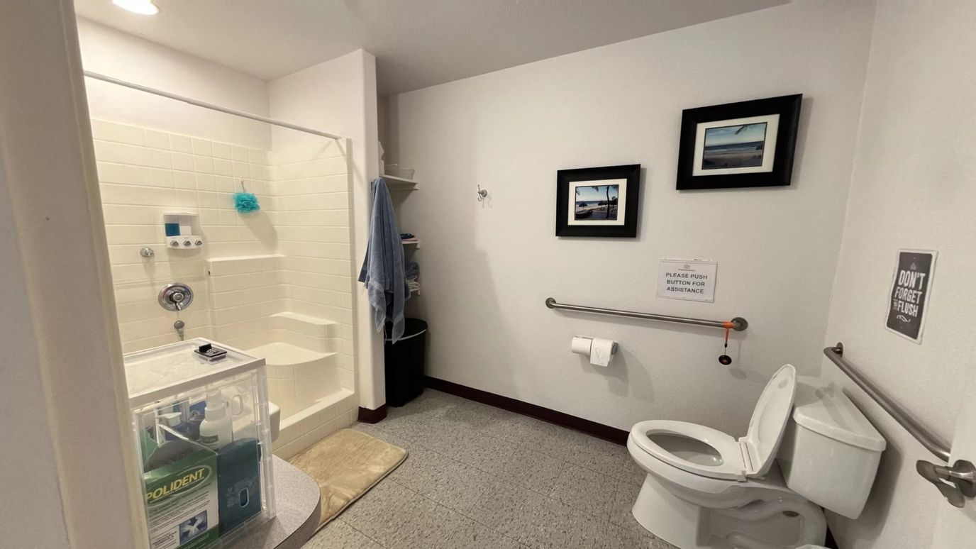 The secure environment features large common areas equipped with flat-screen TVs, books, games, and a piano, promoting a sense of community. Residents have access to cable, Wi-Fi, laundry services, and toiletries for their comfort. In-home Sunday services are also available for those who wish to participate.