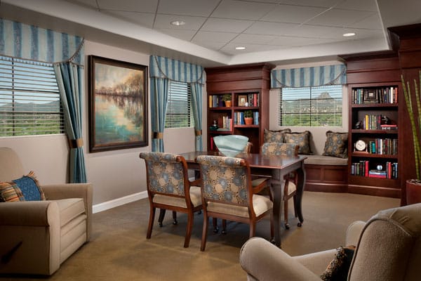 The Prescott Lakes lifestyle is built on comfort and convenience, allowing residents to thrive and live fully. Community accommodations encourage residents to engage in enriching activities and programs that help with their holistic needs: a library, a courtyard, an expansive garden, a game room, a swimming pool, and a therapeutic spa.