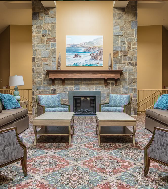 The luxurious resort-style community in Lake Grove provides residents with all the necessary care by providing personal and 24-hour nurse care. Essential services include housekeeping, chef-prepared meals, medication management, transportation, recreational activities, and ADLs. Amenities include a library, a cinema, a fitness studio, an outdoor patio, an art studio, a bingo room, a putting green, and a swimming pool.