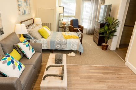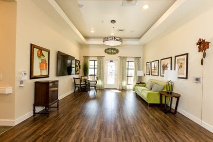 Through the community’s well-established connection with trusted partners, residents can access physical, occupational, and speech therapies. Residents also enjoy many services and amenities that make their lives livelier and easier. The community offers safe common spaces where residents can move freely, full-service communal dining that fosters social connection, and individual care plans, including 24/7 support with activities of daily living from staff with extensive dementia training. Other amenities include a library, a media room, and a spa & salon for wellness and relaxation.