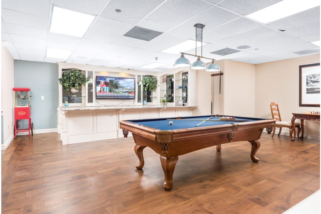 From state-of-the-art fitness centers to a blissful heated indoor pool, they empower seniors to lead active and healthy lives. The inviting billiards room provides a space for leisure and social interaction, while convenient access to nearby establishments such as Walmart, local churches, and a hairdresser ensures that residents’ daily needs are met with utmost convenience. A dependable daily shuttle service is readily available for transportation requirements, while the vibrant community clubhouse serves as a vibrant hub for engaging social gatherings. The expansive gardens and outdoor areas also envelop residents in tranquility, providing a serene retreat that nourishes the mind, body, and soul.