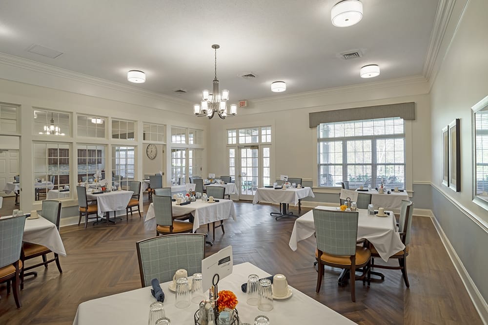 Gardening, light yoga, and walking groups allow residents to live actively and interact with their peers. Chef-prepared meal options are also offered to ensure residents have a delightful dining experience. With its serene location near local establishments and parks, the community guarantees accessibility and convenience. This assisted living community is a trusted choice for retirement in North Carolina, especially with its nurturing setting and cozy living spaces.