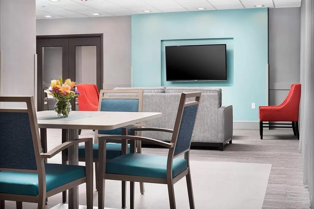 The home boasts a tranquil setting for residents to unwind and reconnect with nature. Within the center, private and intimate rooms await, offering a personal retreat where residents can find solace and comfort. The dining experience is nothing short of exceptional as well. A spacious and inviting dining area sets the stage for culinary delights, where residents can savor delicious meals crafted with care. Additionally, comfortable lounges throughout the facility provide a cozy setting for relaxation and socialization.