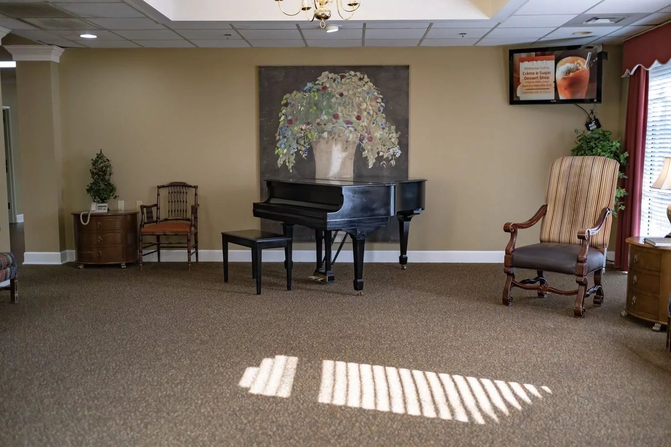 Residents get seamless access to their amenities and services such as engaging in wellness programs, outings and events, transportation, housekeeping, and laundry services. Other community features include a snack and beverage bar, outdoor common areas, and a spacious dining room.