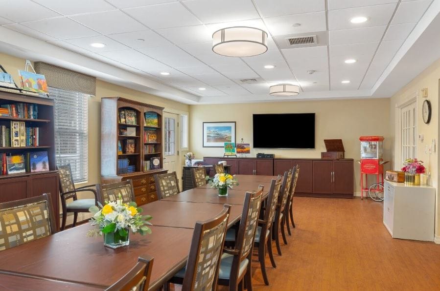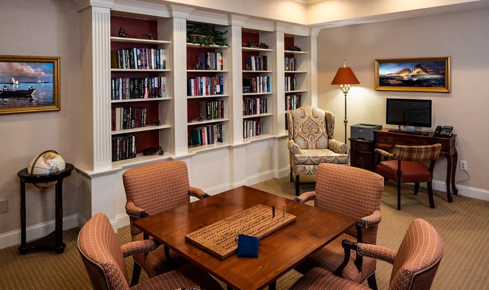 The home also gladly welcomes respite guests. They are a pet-friendly community with stunning indoor and outdoor common areas. Residents can relax and socialize amidst beautiful surroundings or treat themselves to a fresh haircut at the convenient on-site barber shop. What’s more, they can engage in friendly competition in the game room, indulge in ultimate relaxation in the soothing Jacuzzi, unleash creativity in the arts and crafts center, or take a refreshing dip in the swimming pool exclusively designed for memory care patients.