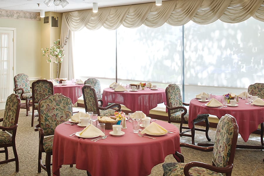 Classy private and semi-private rooms offer maximum comfort, with individual climate control, housekeeping, mail services, and complimentary laundry, while activity rooms, elegant gardens, and common lounges serve as ideal spaces for socialization among the assisted living community, and family.