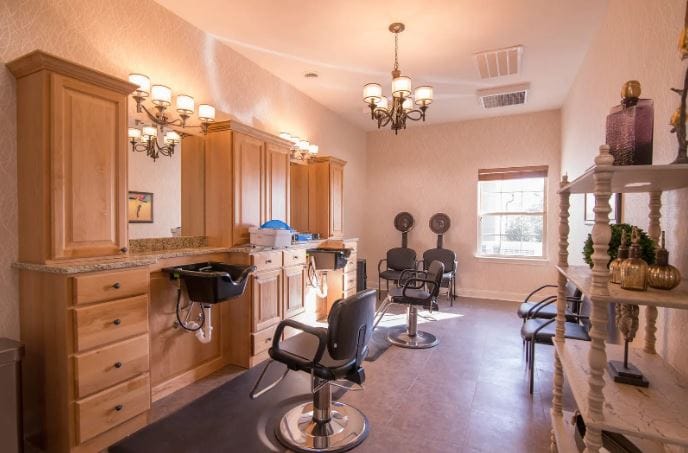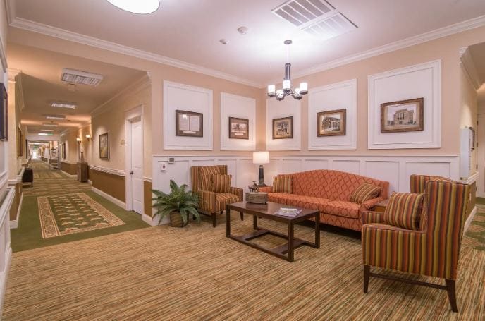 The community further enhances residents’ quality of life with care services, including assistance with daily living, medication management, periodic check ups, personal grooming assistance, and incontinence care. Residents stay active and engaged with a broad range of daily programming and activities. The community also provides amenities like a beauty/barbershop, walking trails, pharmacy services, screened in patios and courtyards, and transportation services for residents’ comfort and enjoyment