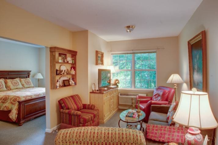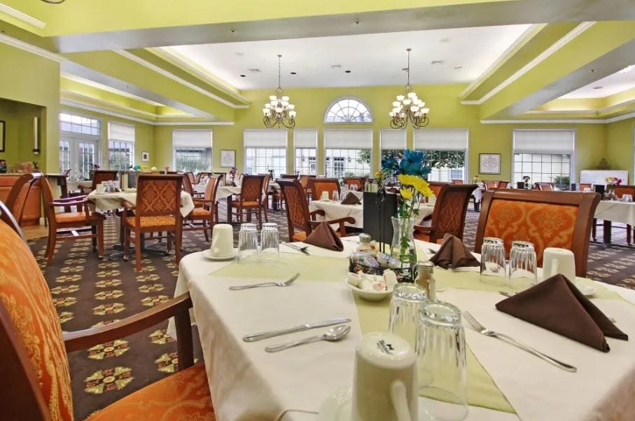 The community features a variety of services and amenities that empowers residents to live a fulfilled and meaningful life. Residents eat well with three chef-prepared meals served in a cozy dining area that fosters bonding over meals. Apart from their specialized memory care program, the community also features an Alzheimer’s support group to ensure residents dealing with memory loss feel a sense of belonging and support. Amenities include an arts & craft studio, a salon, well-stocked library, a computer lab, beautifully maintained outdoor areas, and cozy common areas.