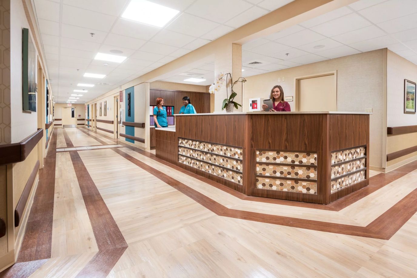 An interdisciplinary, experienced care team of nurses, therapists, and certified nursing assistants is accessible around the clock to respond to the unique needs of each patient and resident. A physician directs all care, and the team is in regular contact with families so that they can rest assured that their loved one is happy, comfortable, and receiving the care they require. The nursing team is acclaimed for the quality of service it provides.