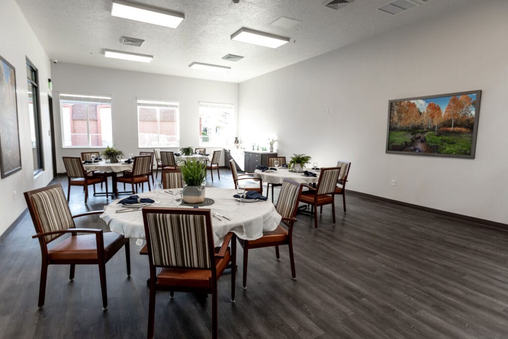 Residents get seamless access to their amenities and assisted living services, such as engaging in wellness programs, outings and events, transportation, housekeeping, and laundry services. Other community features include a snack and beverage bar, outdoor common areas, and a spacious dining room. Services are provided to the residents as an approach to offer flexibility and comfort, encouraging seniors to maintain their independence.
