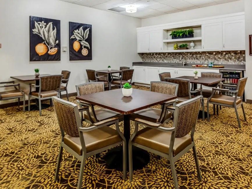 Residents get seamless access to their amenities and assisted living services, such as engaging in wellness programs, outings and events, transportation, housekeeping, and laundry services. Other community features include a snack and beverage bar, outdoor common areas, and a spacious dining room. Services are provided to the residents as an approach to offer flexibility and comfort, encouraging seniors to maintain their independence.