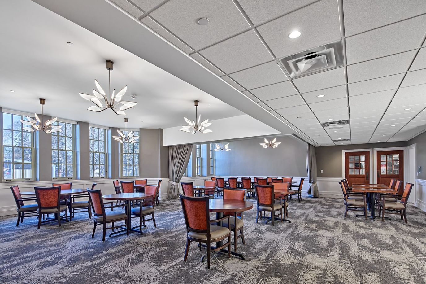 Residents enjoy private, apartment-style suites with modern amenities, including individually controlled heating and air conditioning, private bathrooms with showers and grab bars, and emergency call response systems. The community features beautifully landscaped outdoor spaces, comfortable common areas, and a variety of activity rooms to encourage social engagement and relaxation.