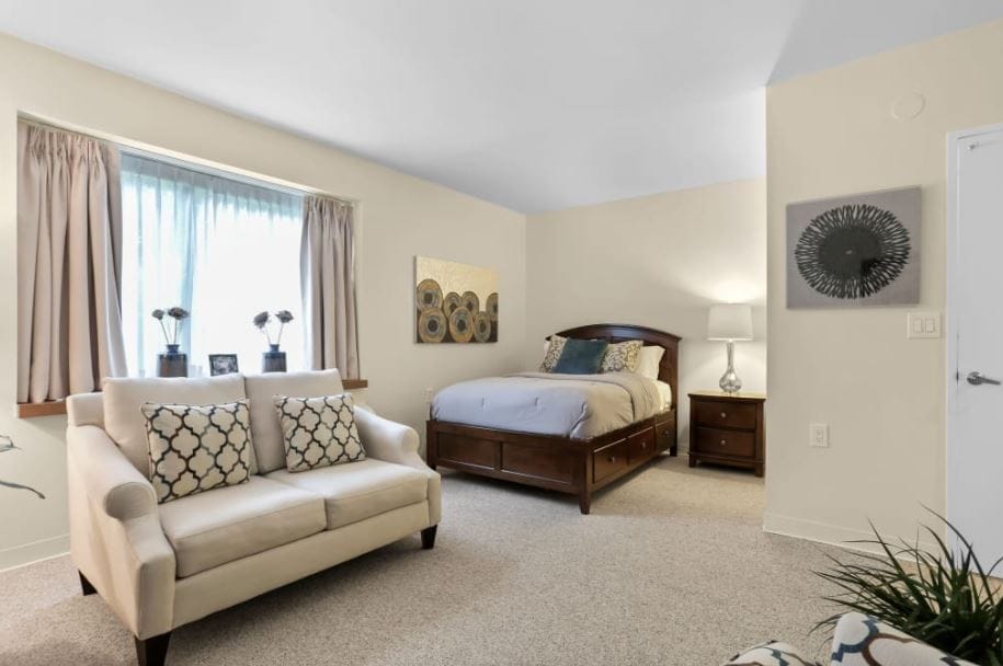 The Inn is a haven for seniors located in the vibrant town of New Canaan, Connecticut. Here, seniors are embraced in an atmosphere that feels like home, surrounded by posh and inviting surroundings. The interior of The Inn is thoughtfully designed, featuring spacious seating areas and inviting communal spaces. The presence of a piano adds a touch of elegance, creating a family-friendly atmosphere where residents can truly feel at home.