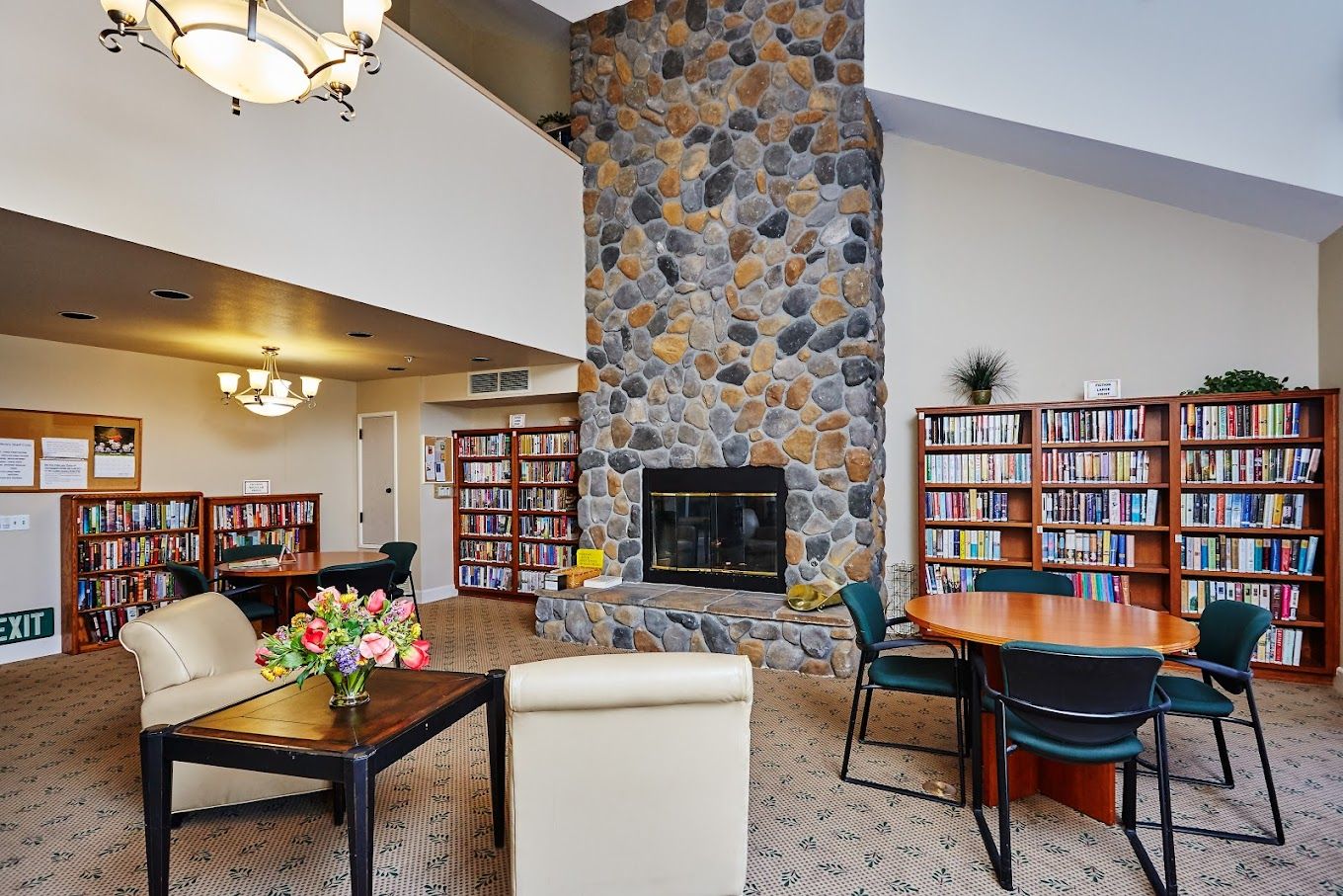 Memory care residents receive hands-on support with the community’s evidence-based Clare Bridge Training that strives to meet all their needs from activities to dining. Scheduled meal times are provided for memory care residents to foster familiarity alongside delectable, nutritious meals. The community is equipped with wondrous amenities including a fitness center, a beauty and barbershop, a therapy room, a game room, a theater, a sports bar, business centers, a clinic, an outdoor pool, a library, a coffee shop, a porch, a chapel, an arts and crafts studio, billiards, a putting green, meeting rooms, a piano, serene walking paths, and aesthetically landscaped grounds for its residents’ enjoyment and wellness.