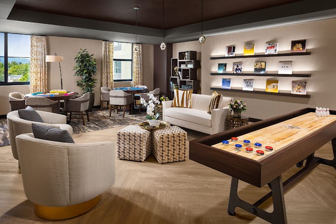 The environment at Vivante Newport is built on comfort and convenience, allowing residents to thrive and live fully. Committed to being the best senior living experience for seniors in Newport Beach, its community accommodations include elegant restaurant-style dining, well-lit lounge areas, a bowling alley.