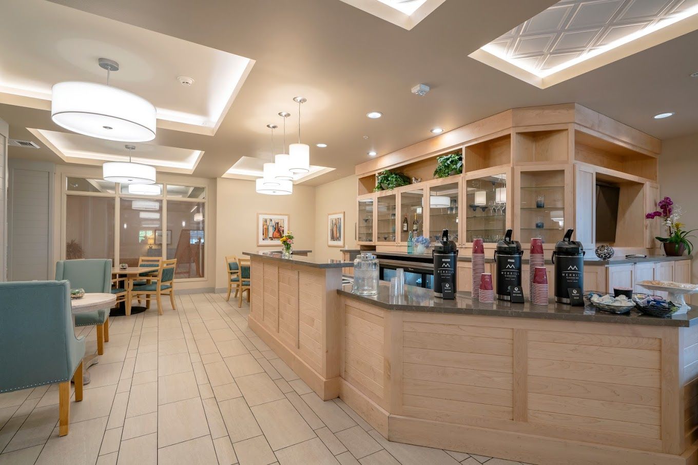 Merrill Gardens provides a comfortable and supportive environment with a range of amenities and programs, including anytime dining, wellness programs, and scheduled transportation services. Residents can relax in inviting common areas, enjoy a movie in the theater, or unwind in the salon. With a focus on community engagement and individual care, Merrill Gardens ensures a fulfilling experience for all its residents.