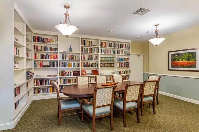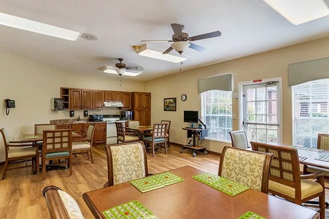 Assisted living residents receive help with daily activities, such as dressing, bathing, and medication management, as well as household chores and maintenance. Memory care residents live in secure, apartment-like homes with support from associates trained to care for seniors living with cognitive challenges, including dementia and Alzheimer’s. Both assisted living and memory care residents have access to a wide range of activities, including fitness classes, arts and crafts, card games, movie nights, and bingo. Dining is also a highlight, with nutritionally-balanced meals served in an elegant setting and opportunities for residents to provide feedback and share family recipes.