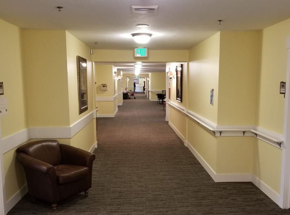 The vibrant home offers a list of services that include 24-hour nursing supervision, transportation, housekeeping, medication management, an emergency call response system in every room, and cozy outdoor and indoor common areas. Other activities include movie nights, fitness classes, a gardening club, and other scheduled social events.