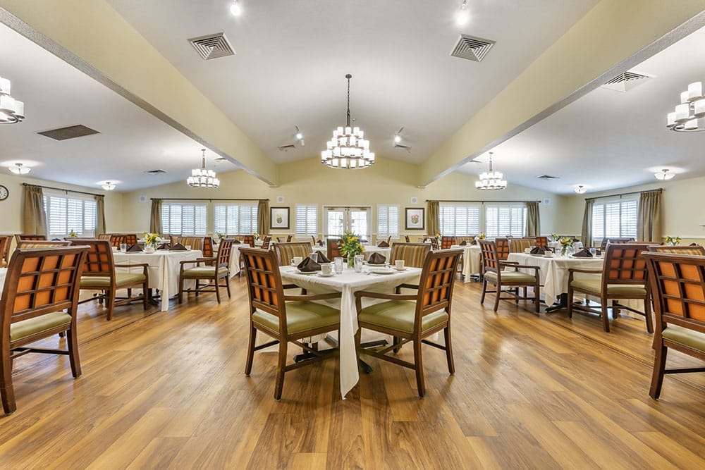 Residents can energize their day in the state-of-the-art fitness room or unwind with a soothing massage in the dedicated massage room. The enclosed patio, specially designed for memory care, allows residents to enjoy fresh air and natural surroundings. The library offers a wide selection of captivating books, and the convenient general store satisfies residents’ shopping desires. These are just a glimpse of the remarkable amenities that await. The handicapped-accessible bathrooms are thoughtfully designed to accommodate mobility needs without sacrificing style or comfort, making it an ideal assisted living community for disabled adults. The home is dedicated to making senior living accessible and affordable, including assisted living for veterans. Discover a community that truly understands and celebrates each resident’s unique story, while providing specialized assistance for assisted living costs.