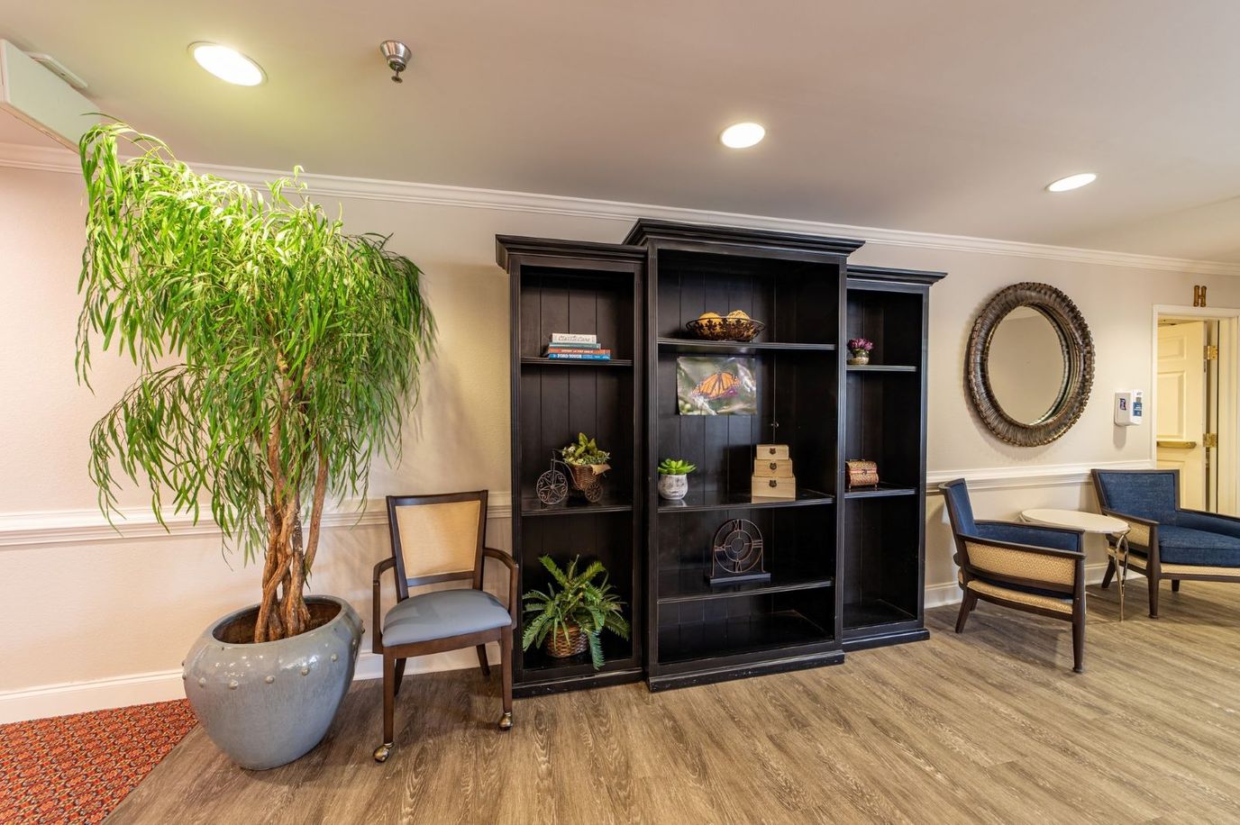Memory Care Secured, specialized care for people living with Alzheimer's or dementia. Staff trained in cognitive impairment, with higher staff-to-resident ratios and an environment designed to reduce confusion and wandering risk.