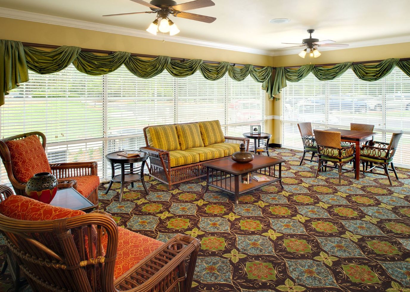 Located in Columbia, South Carolina, The Palmettos of Parklane is a premier senior living provider offering Assisted Living and Memory Care services. With a private and spacious campus, The Palmettos of Parklane provides a comfortable and welcoming environment for its residents. The community features a 75-apartment Assisted Living Community with Memory Care, complete with amenities such as a restaurant-style dining room, landscaped courtyards, and recreational facilities, including a salon.