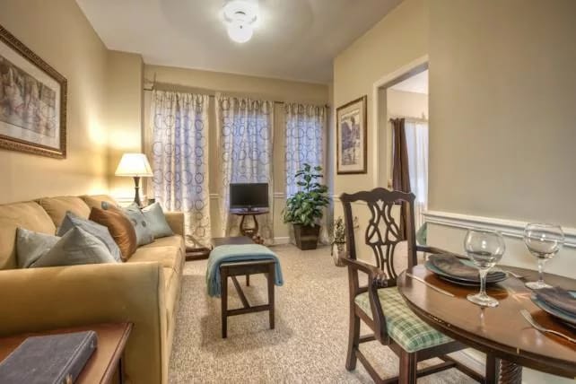 The living spaces at The Village at Summerville are not only stylish but also spacious and airy, providing residents with a comfortable and welcoming environment. Whether it’s a stroll around the campus or participating in various activities and events, residents can create meaningful connections and lead fulfilling lives in this lovely community.