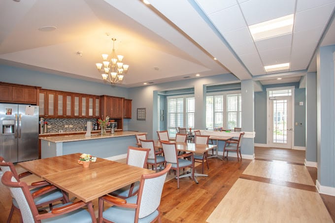 The vibrant home offers a list of services that include 24-hour nursing supervision, transportation, housekeeping, medication management, an emergency call response system in every room, and cozy outdoor and indoor common areas. Other activities include movie nights, fitness classes, and other scheduled social events.