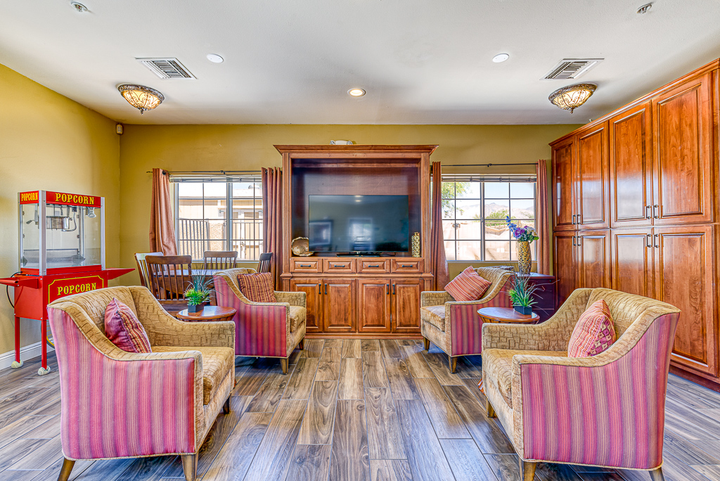Tucson Gardens Memory Care provides residential assisted living amenities and services such as housekeeping, laundry, social events, recreational activities, fitness classes, medication management, and transportation.