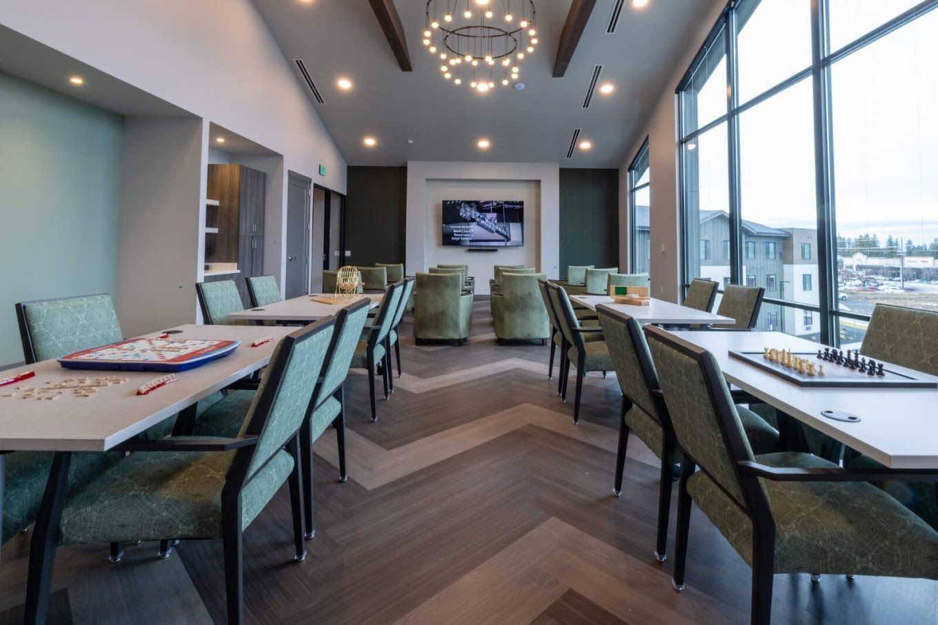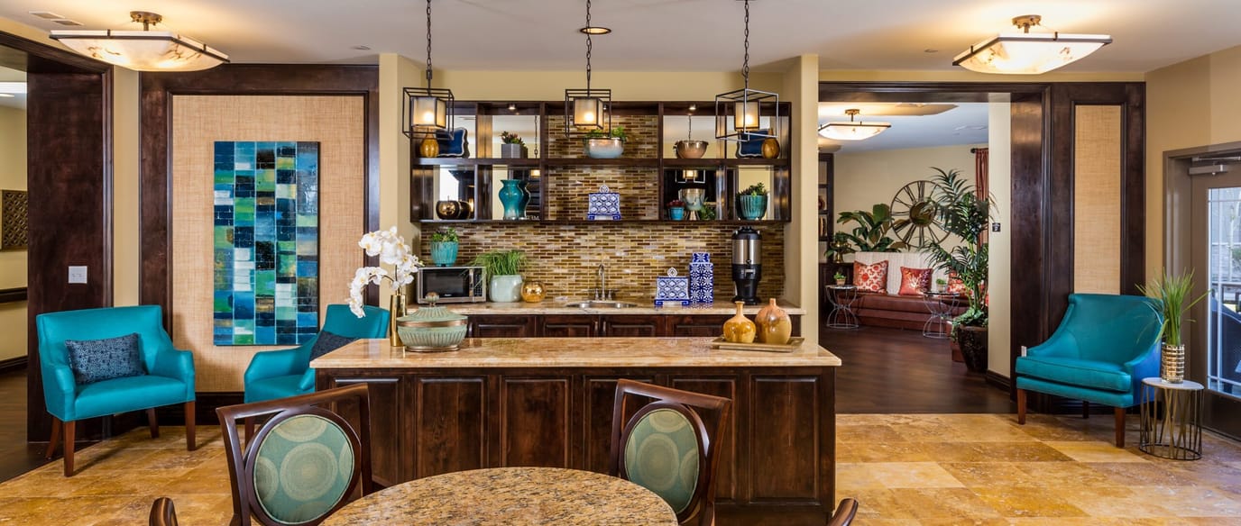 It’s a beautiful building that caters to assisted living and memory care residents are provided with essential features such as ADLs (assistance with daily living), medication management, and housekeeping to name a few. The community boasts their elegant restaurant Lilly’s that has an in-house chef; as well as a Cafe Bistro that is the community’s social hub; and an on-site wellness center that is supervised by staff nurse and caregivers.