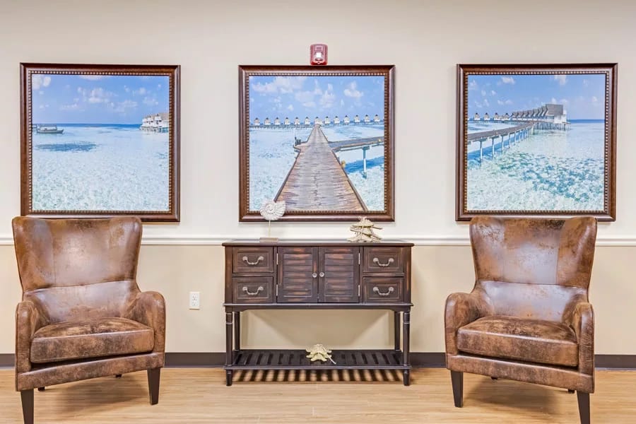 Palm Coast Assisted Living & Memory Care is more than just a residence; it’s a place where personalized assistance thrives, fostering independence within a vibrant social setting. From meticulously designed spaces that promote sociability and freedom to tailored assistance that ranges from housekeeping to medication management, residents receive the ideal blend of support. Caregivers, available round the clock, ensure residents’ peace of mind and stand ready during emergencies. Residents enjoy many amenities, including an onsite salon and spa, a serene outdoor courtyard enveloped in lush greenery, and a bustling bistro offering a delightful selection of coffee, tea, and snacks. Enriching daily events and programs are curated to infuse life with fun, foster wellness, and forge lasting connections among neighbors. This community accepts Medicaid, as well as pending aid and attendance.