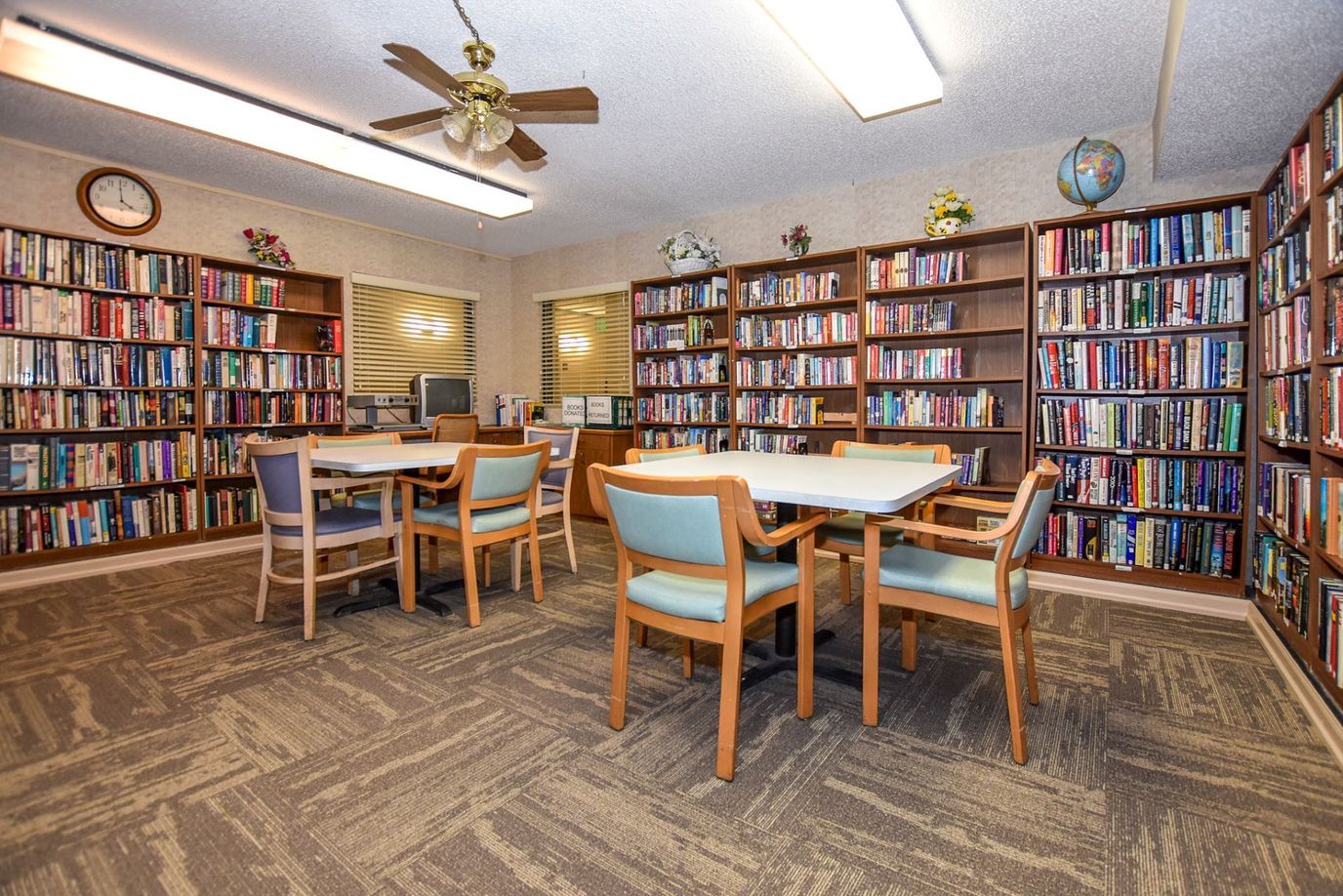 There are a variety of amenities offered at Ansley Parke, these include access to a well stocked library, private dining for visiting families and friends, grooming services, housekeeping and laundry services, and the scheduled trips and excursions to keep the residents engaged with the community, as well as physically and mentally active.