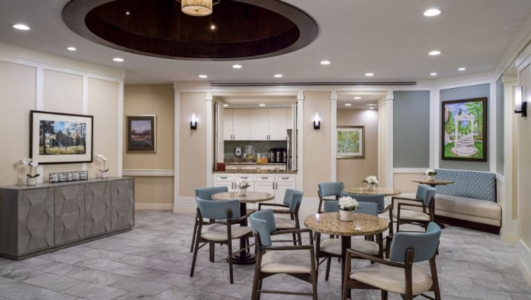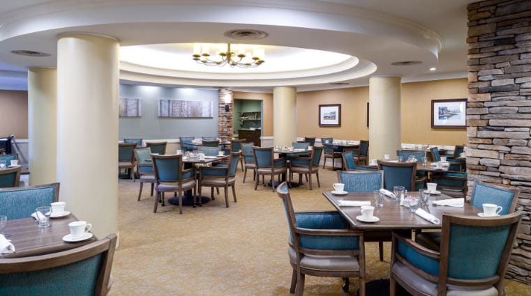 With most of the maintenance taken care of, Atria residents can pursue their passions and enjoy the community’s delightful amenities. Residents can challenge themselves at the fitness center with their friends, schedule free transportation to local appointments and outings, and explore the scenic surroundings walking at the community’s designated walking paths. Other amenities include a library, a media room, a resident garden, and a physical therapy center. Along with excellent amenities, the community also offers 24-hour assistance, volunteer programs, and Alzheimer’s and dementia support groups to ensure resident’s needs are fulfilled.