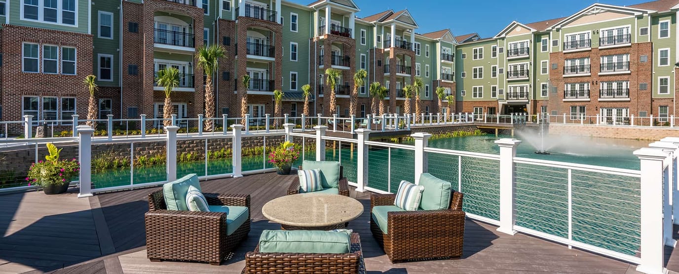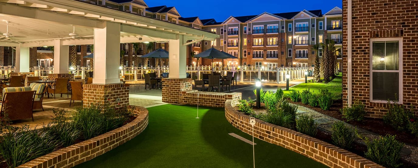 Cambridge Village of Wilmington, located in Wilmington, NC, is a senior living community offering independent living services. The community provides a range of accommodation options, including studio and one-to-two bedroom units featuring fully equipped kitchens with granite countertops, balconies, and patios where residents can enjoy the convenience of individual thermostats, in-unit washer and dryer, and inclusive utilities (water, trash, electric, phone). The living experience is enhanced with walk-in closets, 24-hour emergency response, and around-the-clock reception and security, ensuring each residents’ safety and well-being.