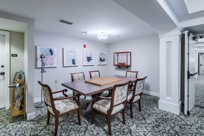 Their list of community features is thoughtfully designed to ensure residential experiences and services received are successful and fulfilling. Services and amenities include 24-hour care staff, concierge services, a full-service salon, an elegant dining room, a library, and lounge areas.