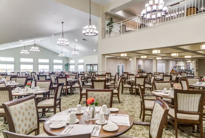 Residential living is enhanced thanks to the upscale amenities designed into the community; these include life enrichment programs, ADLs, restaurant-style dining, housekeeping, social activities, and transportation services. Amenities include a billiards room, a library, an on-site LUXE spa salon, and lush gardens.