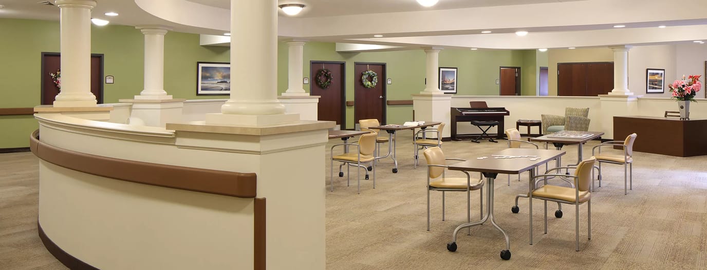 Memory Care Secured, specialized care for people living with Alzheimer's or dementia. Staff trained in cognitive impairment, with higher staff-to-resident ratios and an environment designed to reduce confusion and wandering risk.
