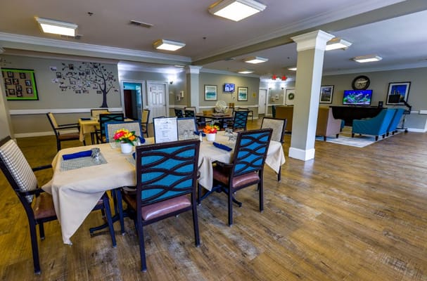 Residents enjoy a variety of amenities, including a media center, courtyard, full-service salon, spacious living rooms and sitting areas. The community provides plenty of opportunities for meeting new friends and finding new passions with their diverse calendar of activities and events, such as outings, social hours, exercise classes, and scenic drives. With most of the chores handled, residents live a carefree lifestyle.