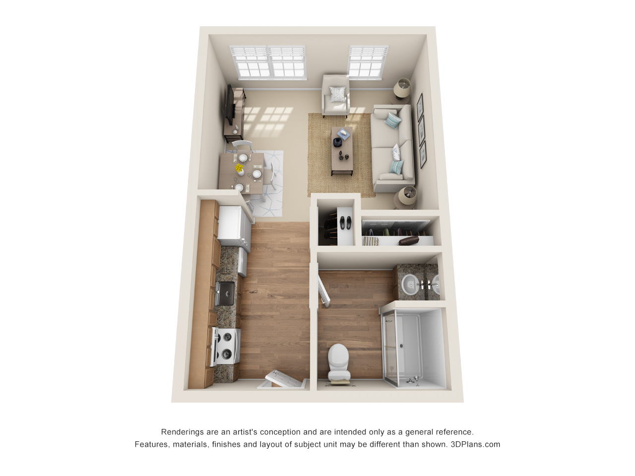 Download PDFStudio floor plan 450 sqft